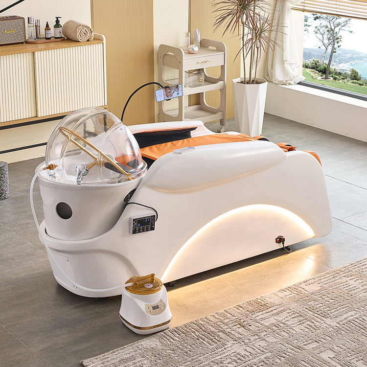 Ce type de fauteuil est conçu pour offrir une expérience de relaxation et de soin exceptionnelle. Avec ses fonctions de massage intégrées, son design ergonomique et son confort premium, il est idéal pour les rituels Headspa et les soins du cuir chevelu.